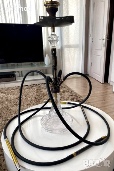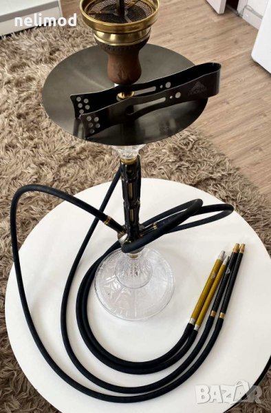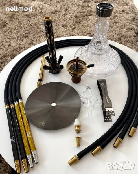 Истинското бижу за вашият дом - THE HOOKAH Black Mamba Anthrazit Gunmetal & Gold ..! Това е едно красиво и изящно наргиле за ценители ....! Елегантност и Немско Качество ...! Уникална изработка , кристално стъкло + висококачествена неръждаема стомана V2A ...! Бързо сглобяване и лесно за поддържане , Яка тяга..! Сглобявано е и е изппробвано ! Височина без уловителя за меласа THE HOOKAH - 60 см . За да е пълен комплекта към него добавяме - четири силиконови маркуча с карбонови мундщуци оригинални THE HOOKAH , глинена чашка и koронка THE HOOKAH , щипка THE HOOKAH + подарък 100 бр накрайници