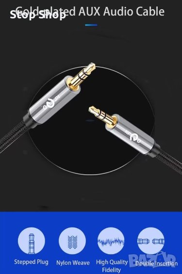 Високо качествен AUX Аудио кабел 3,5мм. стерео жак. Позлатените 24K конектори гарантират чисто звуково изживяване. Алуминиев PREMIUM корпус го прави невероятно издръжлив, което е в състояние да избегне смущения при трансфериране. Висока устойчивост, боравете с кабела без притеснения.
