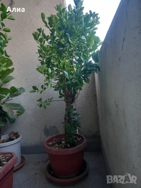 Euonymus japonicus-115лв. В саксията има още един храст, който зимата му падат листата, а лятото 2 много нежен.