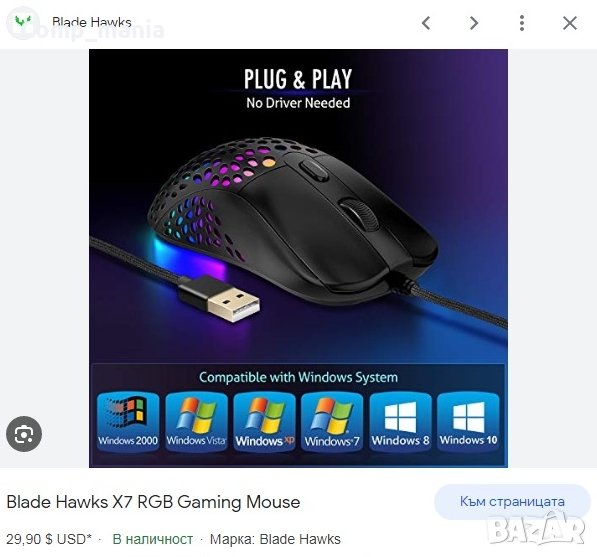 Тази мишка светва веднага, когато е включена в компютър или лаптоп и започва да преминава през цветовете. Цената е за брой 25лева от 30 броя останаха само 2 броя така ли иначе, по принцип по 30 долара са.