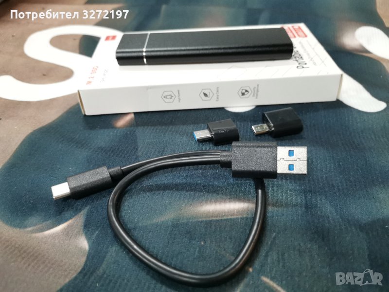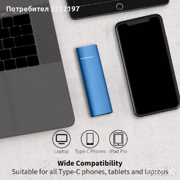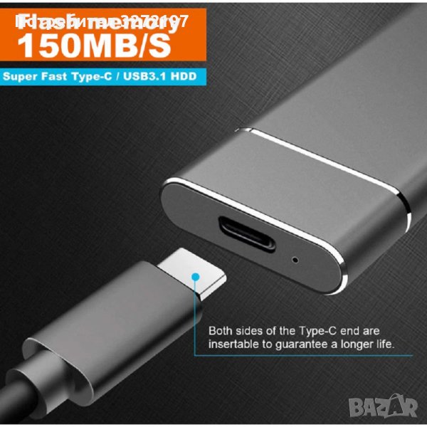 Високоскоростен преносим външен твърд диск SSD 4 TB,Type-C,USB 3.1 интерфейс за лаптоп/PC/Mac и др.+2 бр. адаптери в комплекта: