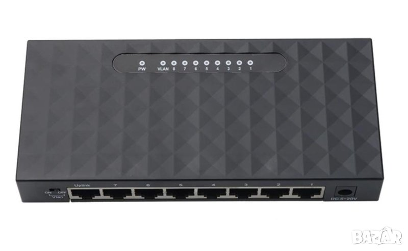 8 Port FAST VLAN Switch MDI/MDIX Auto Uplink Switch 7+1 DC IP Камери 8 Портов Суич за Защитена Мрежа