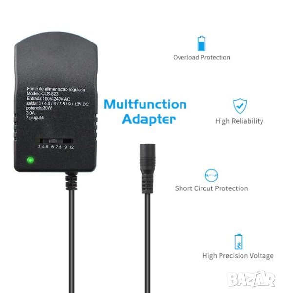 На цена от 14.99 евро е Модел 1: Универсален Комбиниран Стабилизиран Регулируем Захранващ Адаптер Конвертор 3/4.5/6/7.5/9/12V 3.0A 30W