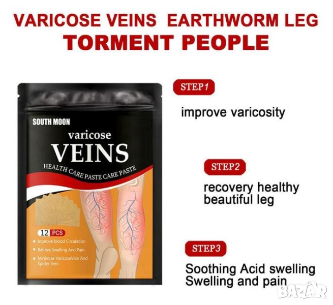 Опаковката съдържа 12 броя пластир за разширени вени.