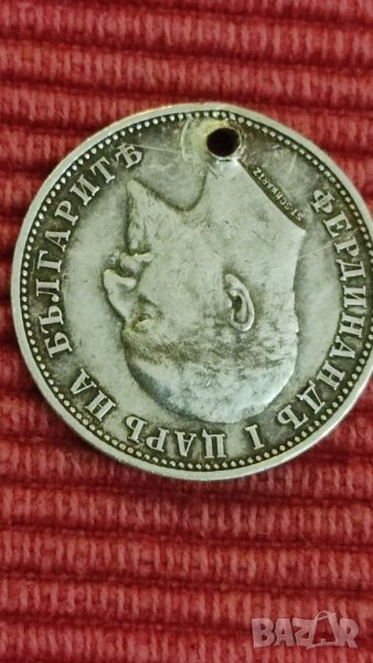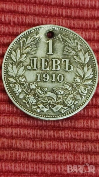 Сребърен 1 лев 1910 г, за съжаление е пробит.