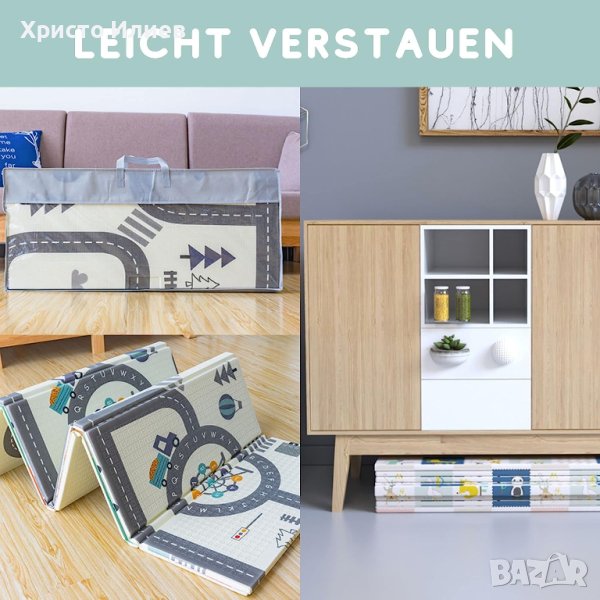 Детска постелка за пълзене, сгъваема: бебешкото килимче може лесно да се съхранява навсякъде и заема малко място. Подложката за пълзене се предлага с две дръжки, така че да се превърне в чанта и да я носите навсякъде.