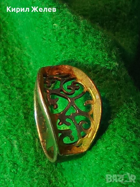 СТАР АЖУРЕН СРЕБЪРЕН АРТ ПРЪСТЕН СРЕБРО 925 с ПОЗЛАТА 34958