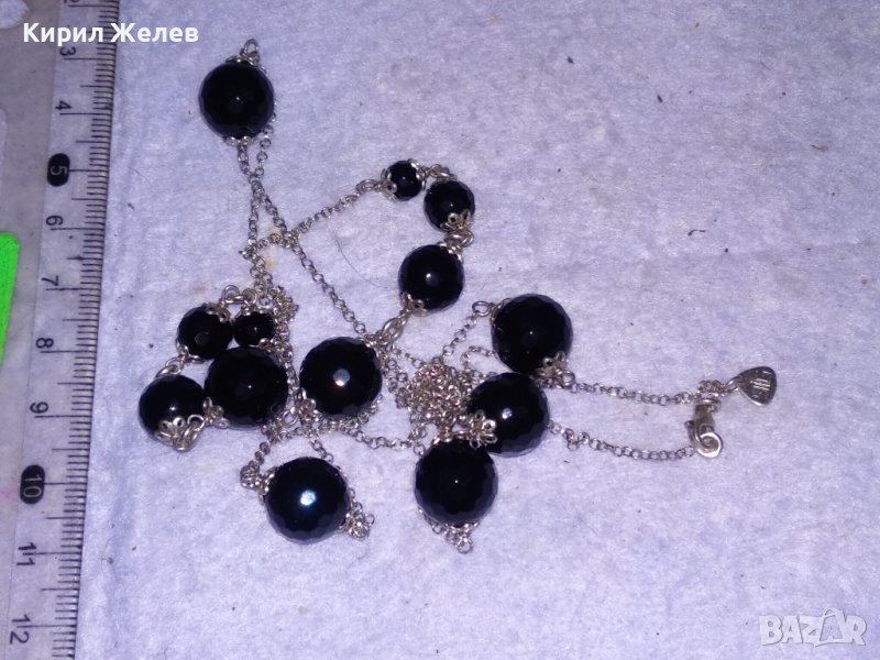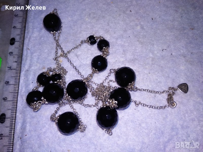 РАЗКОШНО МАРКОВО СКЪПОЦЕННО СРЕБЪРНО ИТАЛИАНСКО КОЛИЕ СРЕБРО 925 с ФАСЕТИРАН ЧЕРЕН ОНИКС 37104