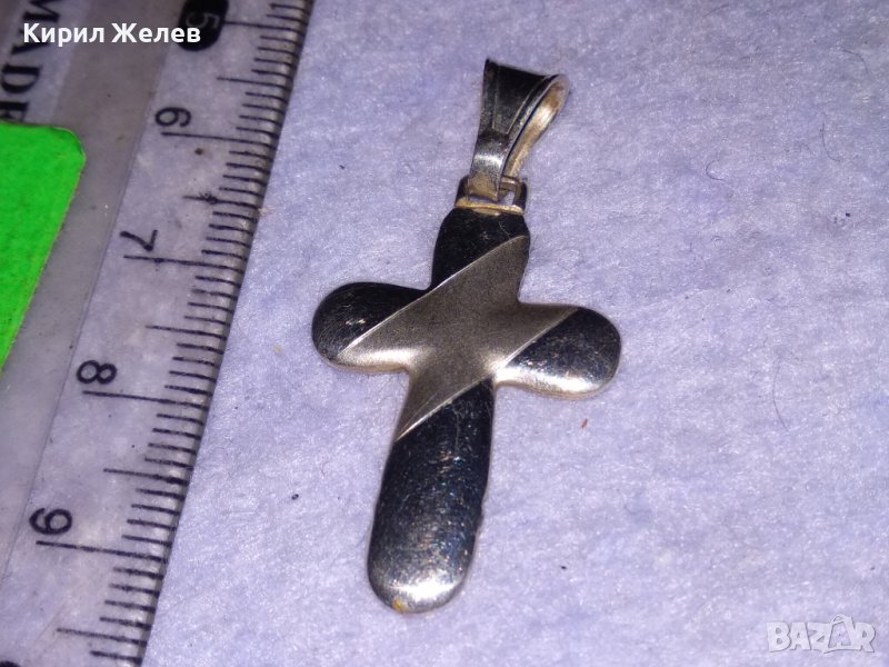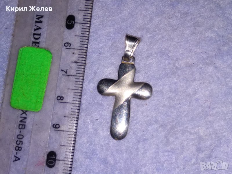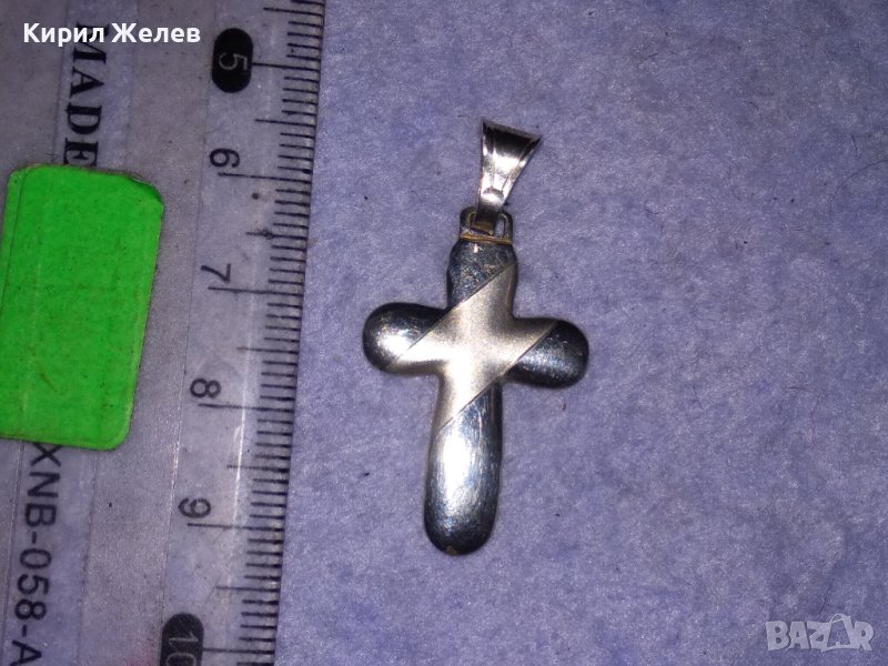 ЕЛЕГАНТЕН ИТАЛИАНСКИ СРЕБЪРЕН АРТ КРЪСТ СРЕБРО 925 с БЯЛА ПОЗЛАТА 38432