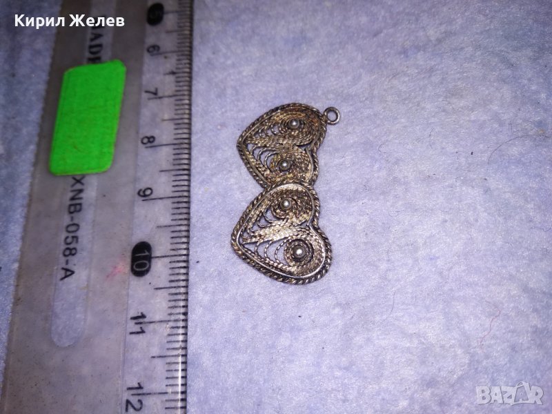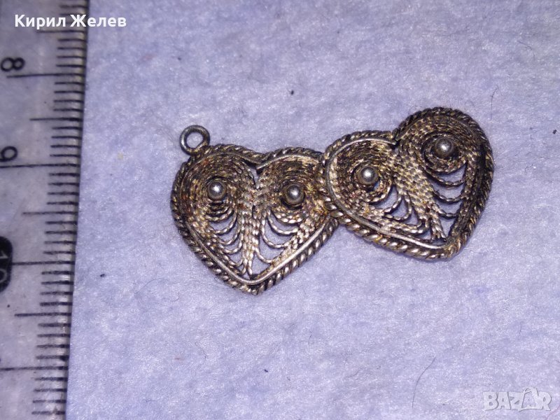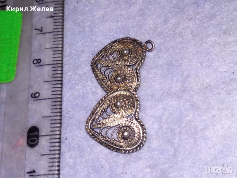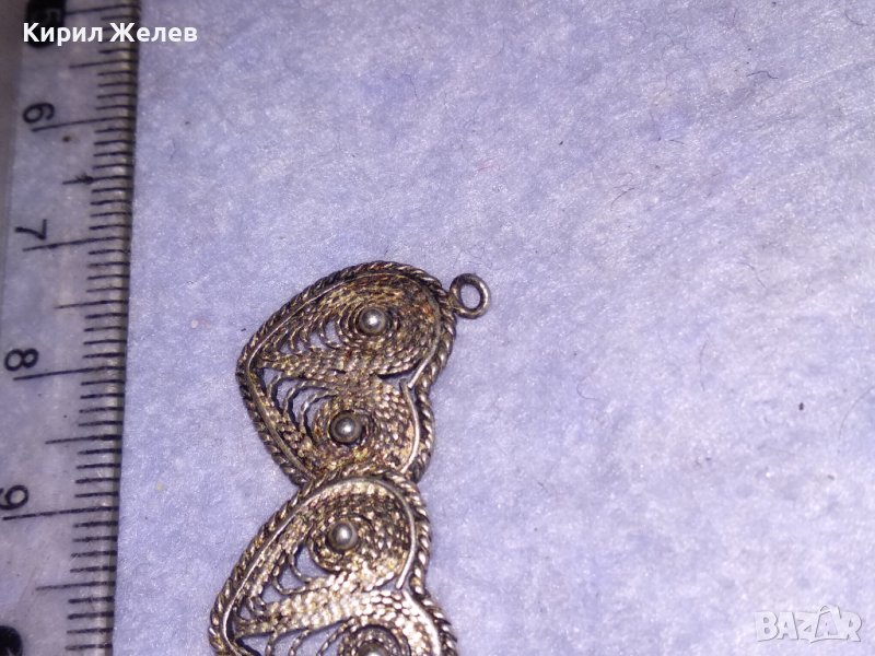 СТАРИННА СРЕБЪРНА ФИЛИГРАННА ВИСУЛКА ДВЕ СЪРЧИЦА РЪЧНА МАЙСТОРСКА РЯДКА ИЗРАБОТКА 31186