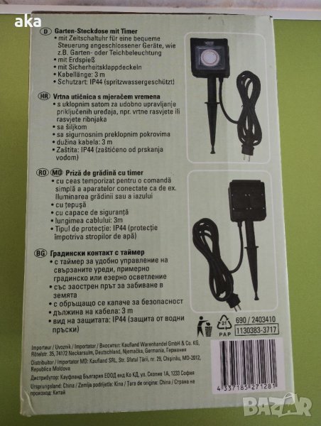 - Гнездата и таймерът са устойчиви на пръски, IP 44