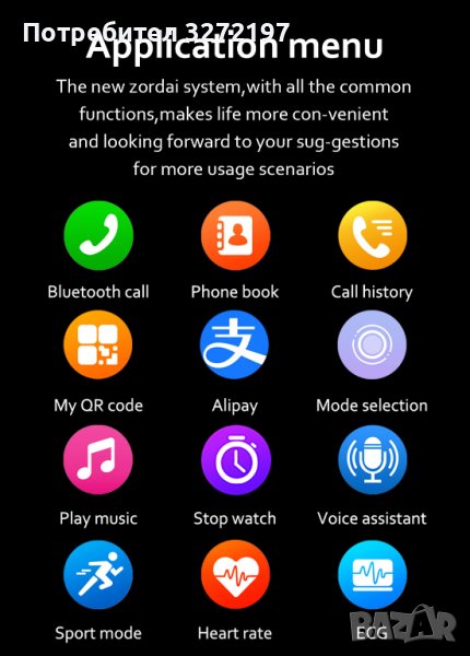 - Обучение за дишане, натискане на набиране,хронометър, настройка на яркостта, мулти-спортен режим, сън, пулс, информация, дистанционна музика, дистанционна снимка, време, търсене на мобилни телефони (свързани с мобилни телефони), Bluetooth разговори, Bluetooth възпроизвеждане на музика , защита с парола, калкулатор, дисплей с разделен екран, бързи джаджи, прогноза за времето, масажор, Alipay, моят QR код,GPS проследяване, NFC, ЕКГ, кислород в кръвта, кръвно налягане, AI гласов асистент