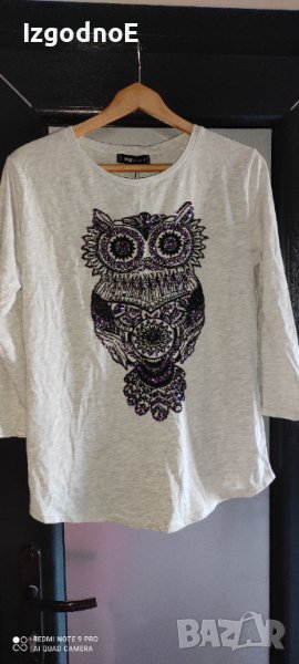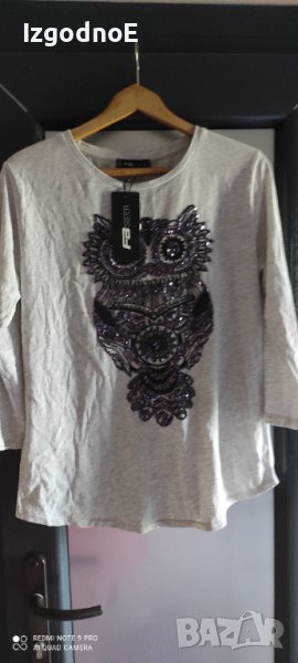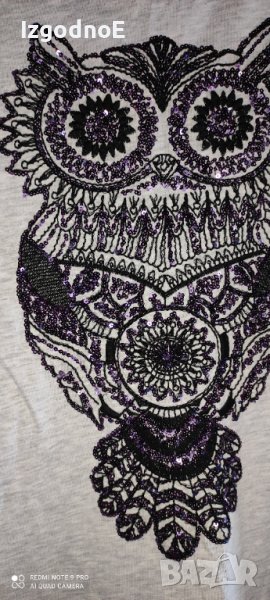 Л-ХЛ нова тънка блуза с бухал, с мъниста. → Обява 41339999