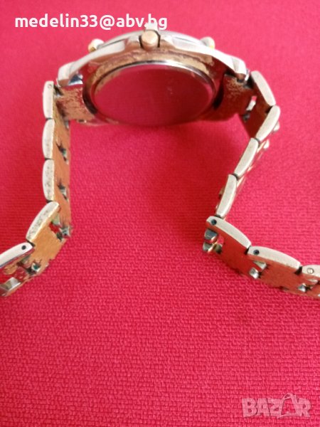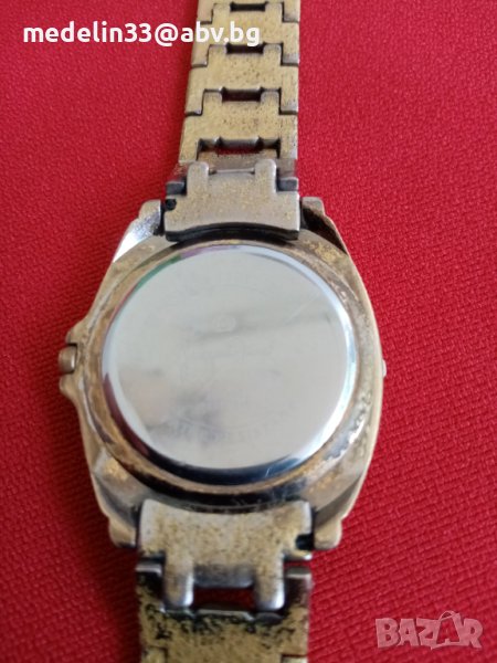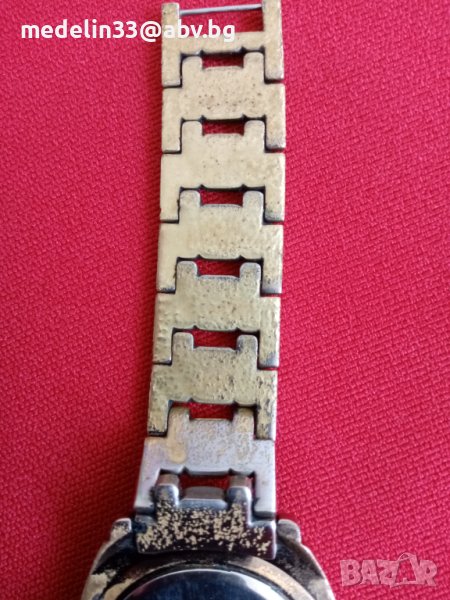 Този съм го купил от Швейцария 2007 г. Носен е няколко години и след като батерията се изтощи не съм я сменял. Верижката е с паднала закопчалка, сигурно може да се добави. Отпред часовника е перфектен, стъкло, циферблат, безела се върти наляво без проблем, датата се сменя. Отзад има нужда да се почисти верижката. Може да предложите на бартер швейцарски винтидж автоматичен часовник, не ми се занимава с батерии.