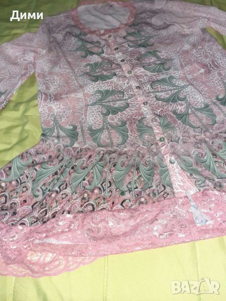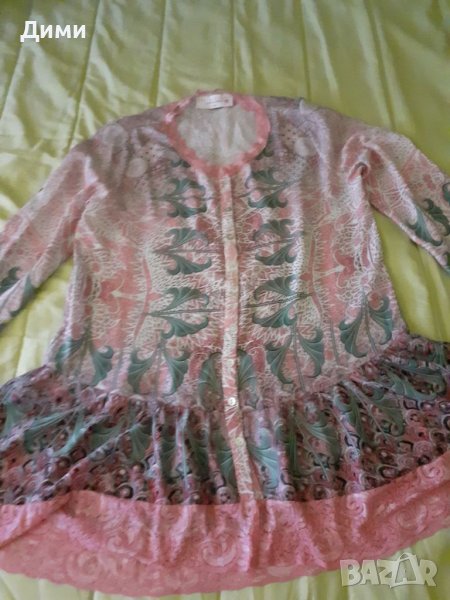 Рокля Туника в розов цвят с шарки и дантела.С копчета.Ръкавите се коригират от дълги на къси.Па р-р е L/XL, но може да се носи и от S и M, стои свободна.