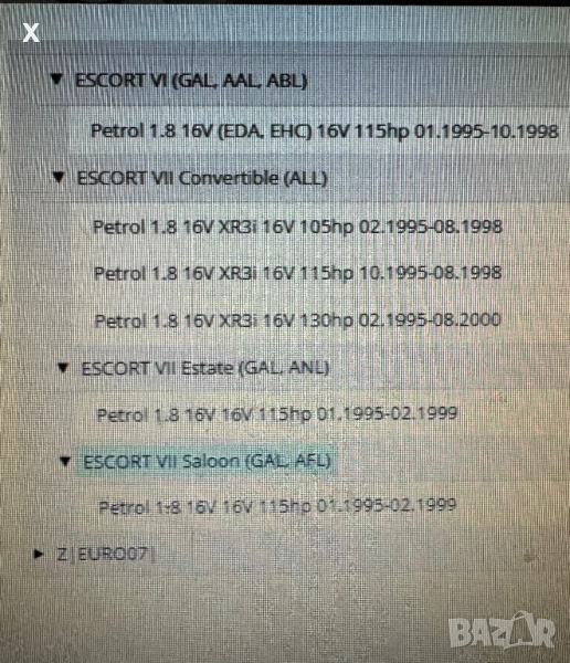 01140555 ЖИЛО РЪЧНА FORD ESCORT 1.8 16V XR3i 1995-2000 ДЪЛЖИНА 1655/1480 OE 1036202 OE 7402917 → Обява 41344863
