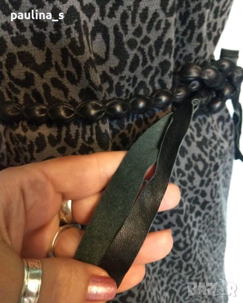 Коланът е ръчна изработка от естествена кожа, бутиков артикул, дължина с мънистата 98см / цялостна дължина 128см - цена 19,99лв.