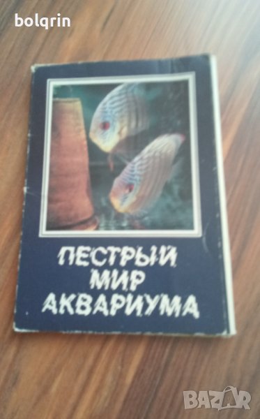 Оригинално заглавие "Пестрый мир аквариума" - "Пъстрият свят на аквариума" . Комплекта се състои от 25 картички с цветни снимки на редки декоративни рибки . На гърба на картичките има информация за отглеждането на сниманата декоративна рибка . Информацията е написана на руски и английски . Издателство \"Планета\" , Москва , 1982 год. Формат височина 15 см. / широчина 10,5 см.