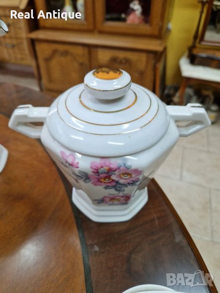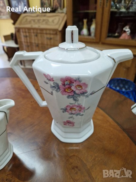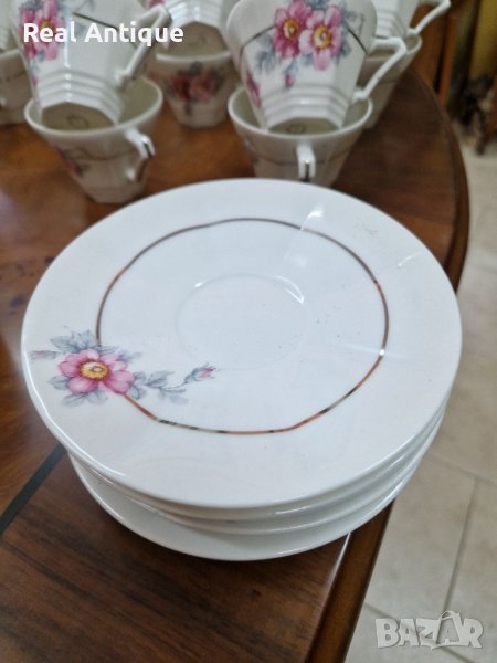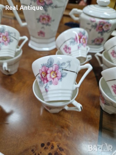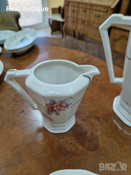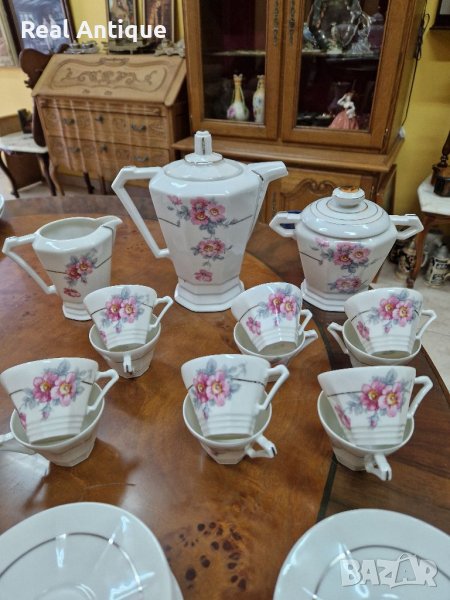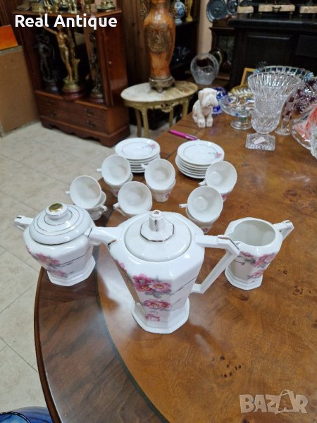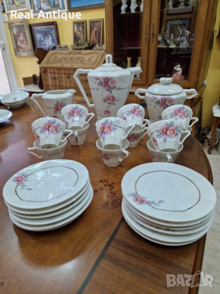 Продавам уникален антикварен френски сервиз за кафе от фин костен порцелан-ART DECO- Limoges D.R.B. в много добро състояние без никакви забележки. Включва 12 чаши за кафе 12 чинийки захарница каничка за мляко и кана за вода. Работя с всички куриери. Отговарям бързо.
