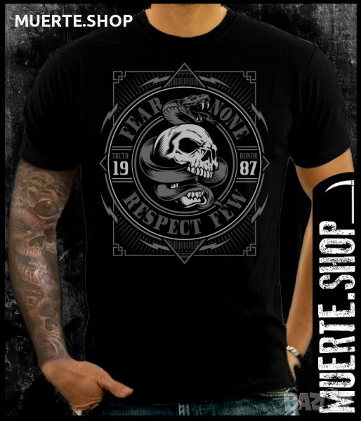 Черна тениска с щампа FEAR NONE RESPECT FEW
