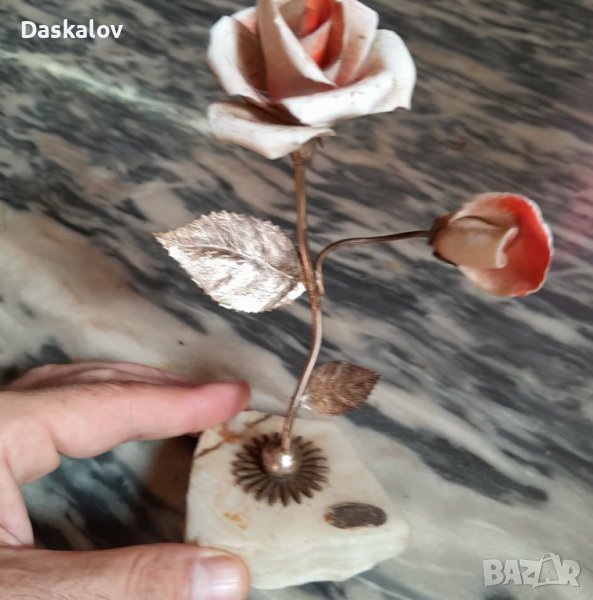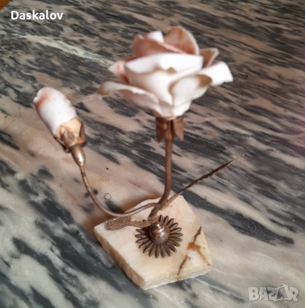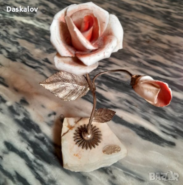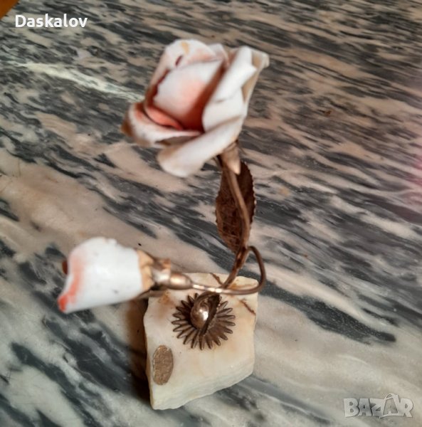 Розата е много ефектна на мраморна поставка метална дръжка и листа с керамични цветове ! Много стара и добра изработа идеална за подарък на ценители!Внос Германия! Разгледайте и др. мои обяви! Благодаря!