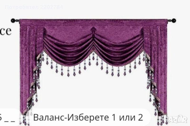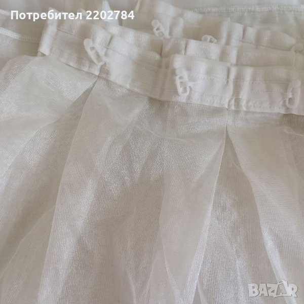 Размери: ширина 280см, дължина 240см.Дължина на драперията (без пискюла) 55см.За нанизване на тръбен корниз.
