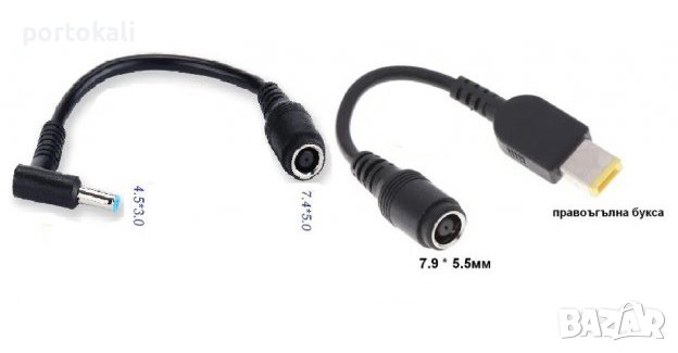 2.От Lenovo с кръгла букса (7.9мм х 5.5мм) към правоъгълна букса .