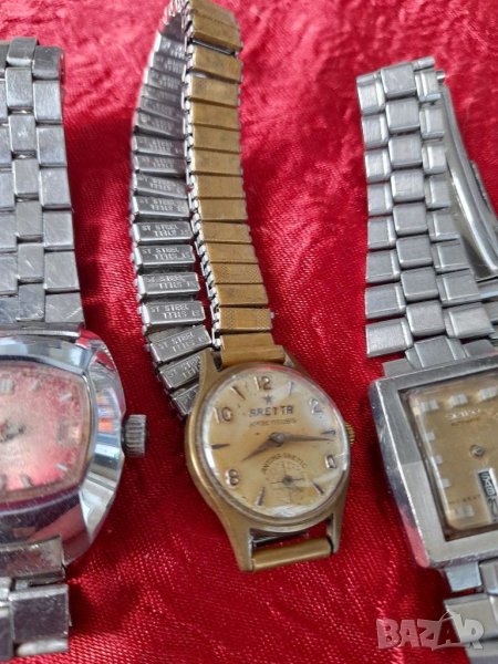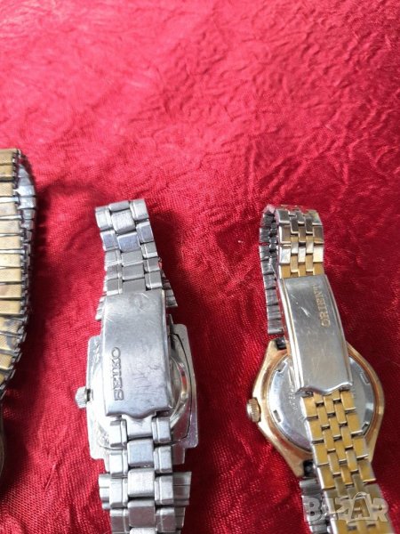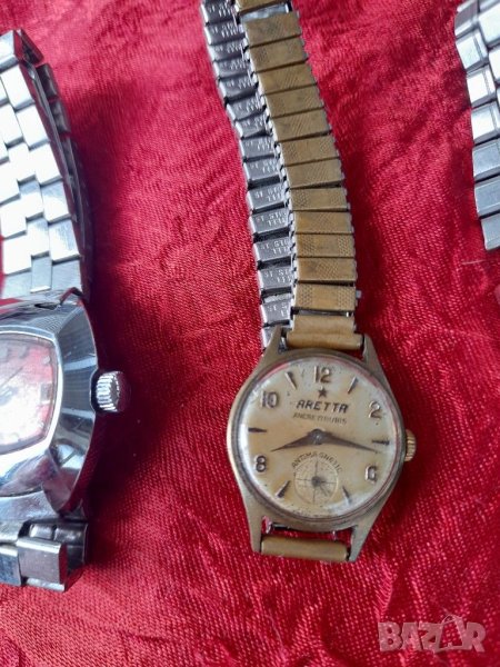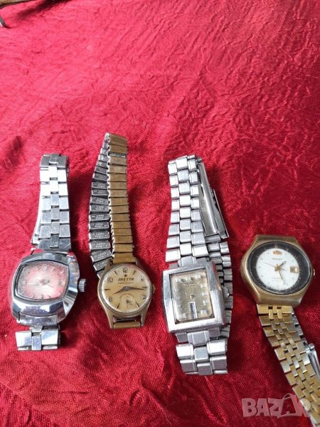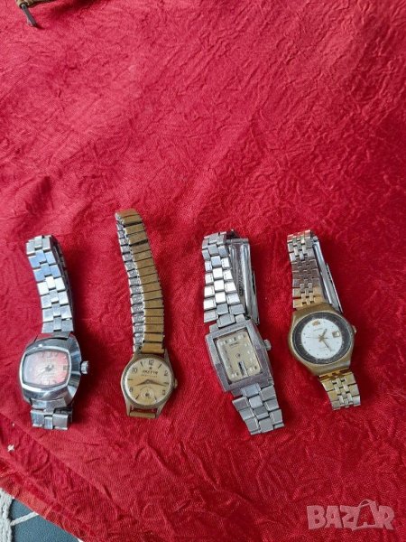 Стари дамски механични часовници, Състояние видно на снимките за почистване и профилактика. 1.Ориент,здрав баланс часовника работи за почистване видно на снимките. 2.Арета,за профилактика 3.Сейко,здрав баланс, сменя дата и ден (забележка липсват стрелки)Оригинал Хи Бит.Брандиран по капак верижка. 4.Функционаращ Япония, същият е за почистване и евентуално профилактика. Часовниците са за професионалисти ,часовникари и ценители на ретро часовници.