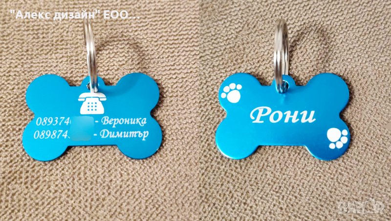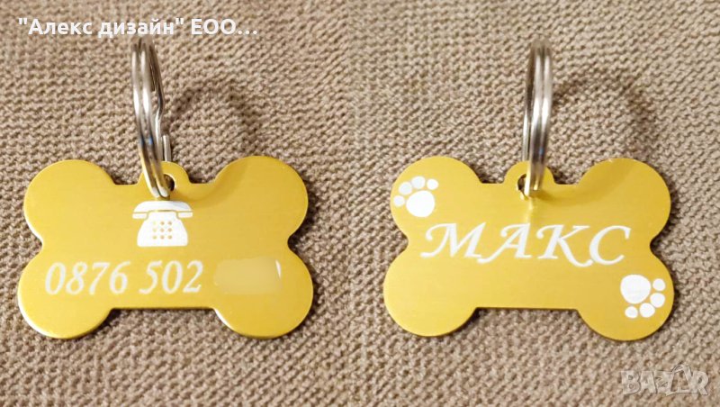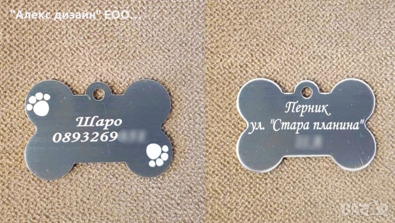 Гравиран медальон за куче с формата на кокал → Обява 41351796