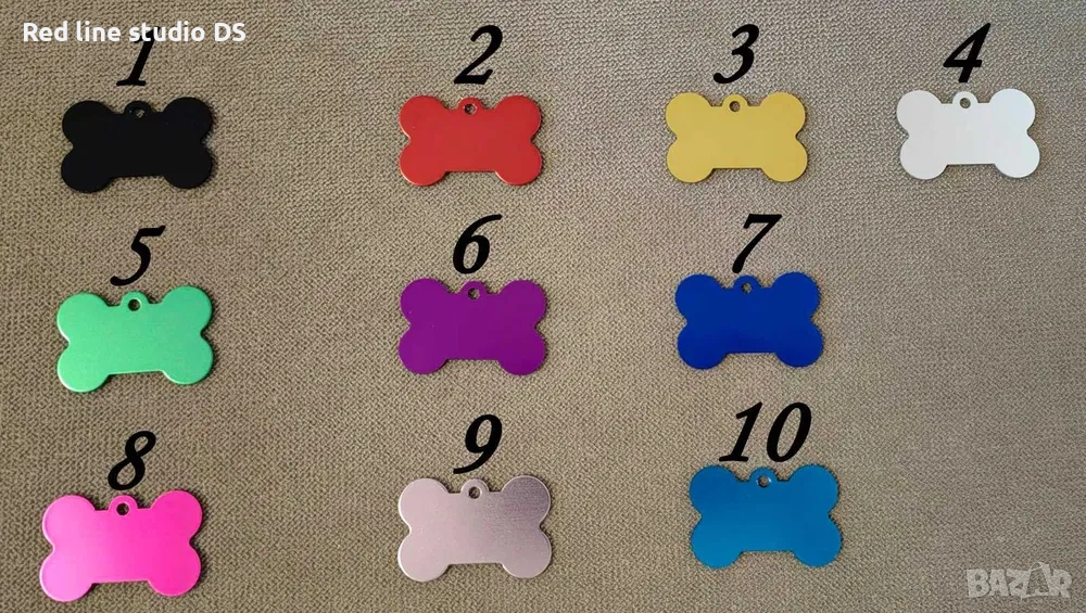 Изберете един от 10-те цвята с които разполагаме (снимка2) и ни напишете името на кучето, телефонния номер и по желание адрес, които да гравираме.