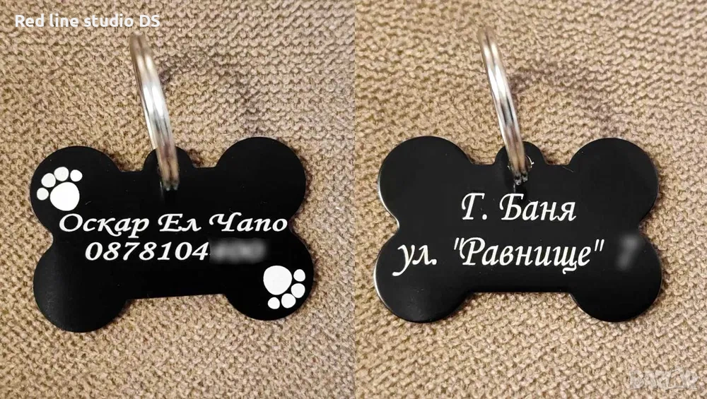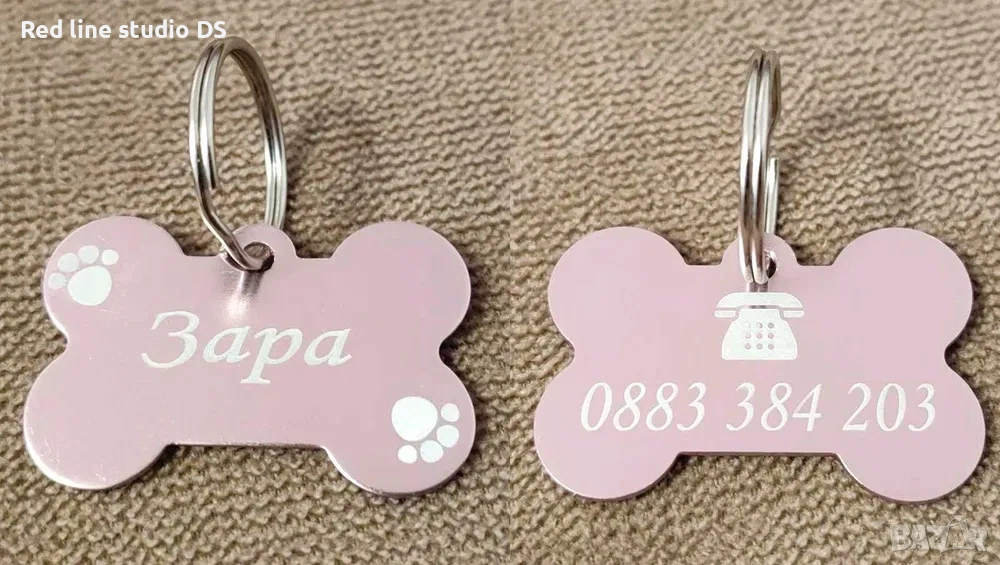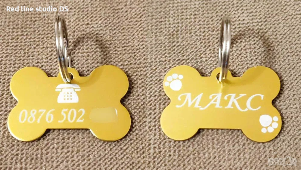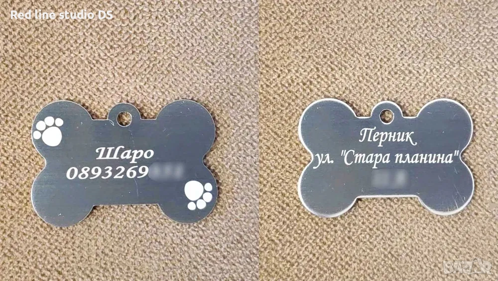 Гравирани медальони за куче с формата на кокал → Обява 41351796