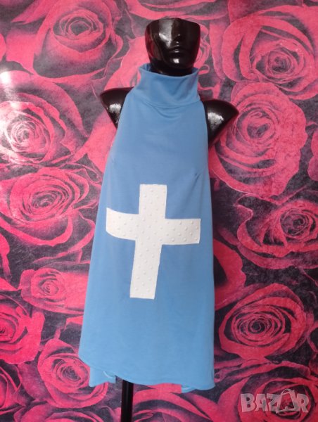 Светло синя А-симетрична туника с бял Кръст Л → Обява 41354522