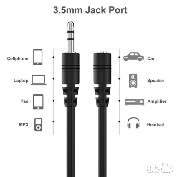 Универсален удължаващ стерео аудио кабел за Смартфони, Таблети, Pad, MP3, Слушалки, Автомобилни Уредби, Високоговорители, Усилватели и т.н.