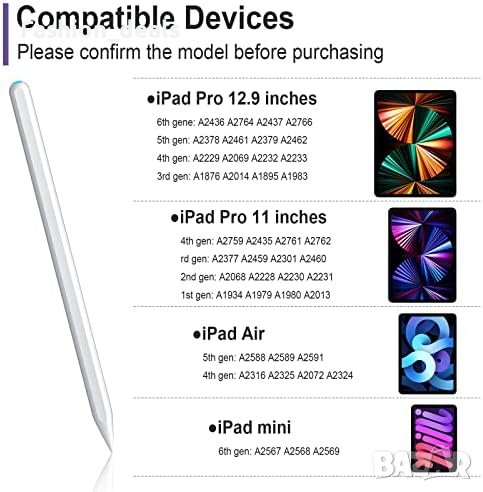iPad Pencil 2nd Gen за съвместим с iPad Pro 11 in 1/2/3/4, iPad Pro 12.9 in 3/4/5/6, iPad Air 4/5, iPad Mini 6