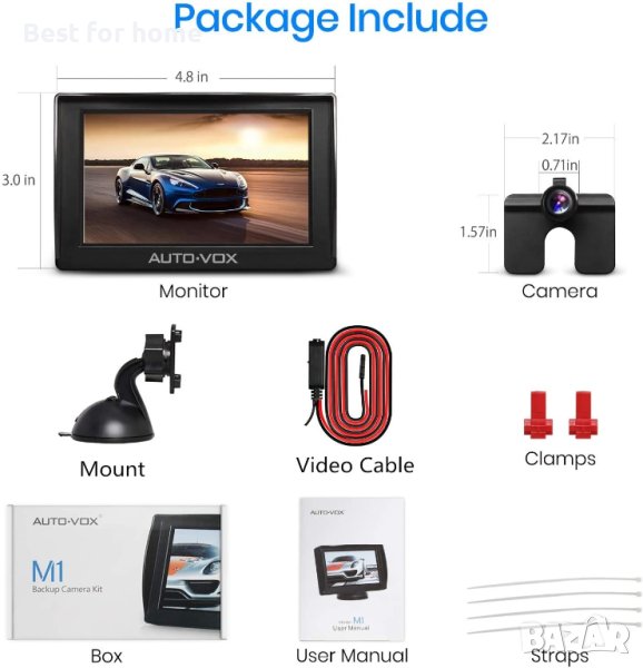 AUTO-VOX M1 Камера за обратно виждане и монитор Система за подпомагане на паркирането на заден ход