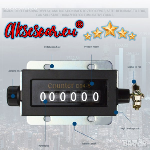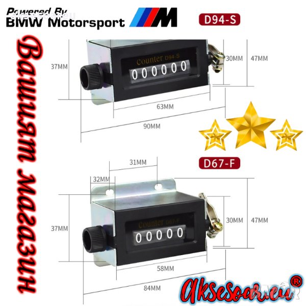 D67-F 5-цифрени броячи, брояч секторен, черен корпус,