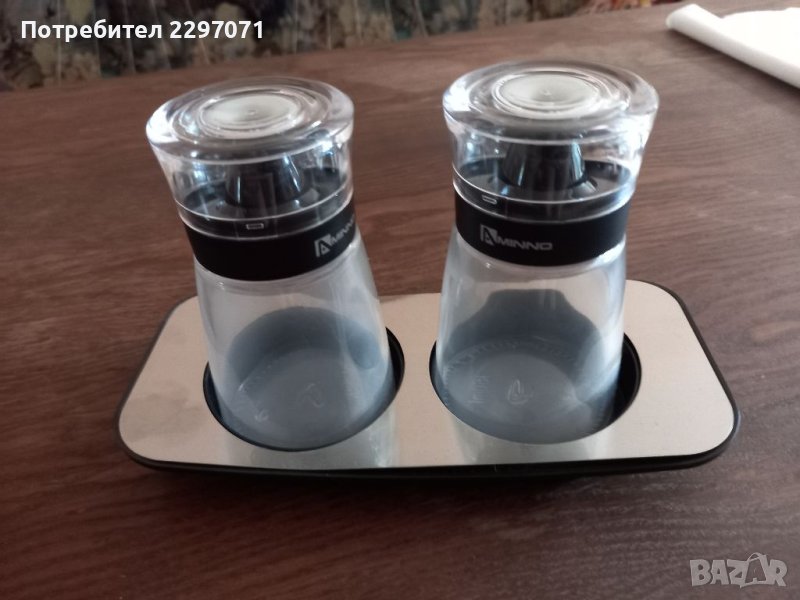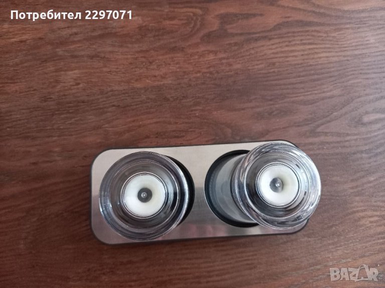 Оливерник,състоящ се от 3 части,табличка, 2 шишенца.Шишетата са стъклени,прозрачните капачки са пластмасови.