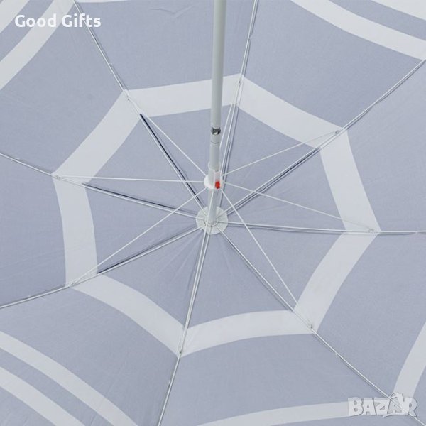 Плажен чадър 2м, Син на бели ивици + клаъф за носене
