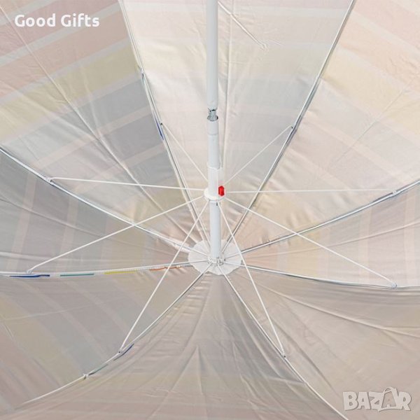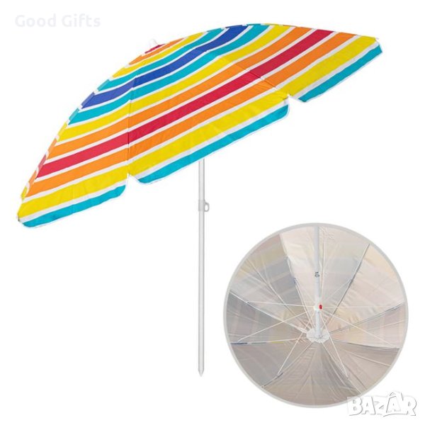 Плажен чадър с чупещо рамо, шарен на райе 2м + калъф за носене