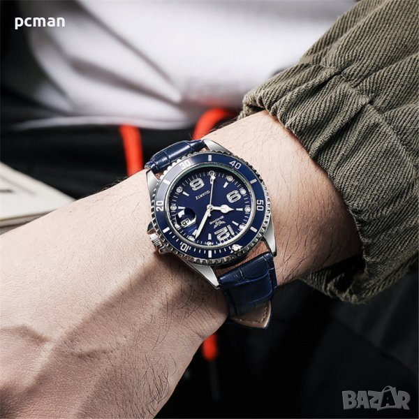 Zhowe Silver Blue Lethar ME920133 Луксозен мъжки кварцов часовник с кожена → Обява 41360441