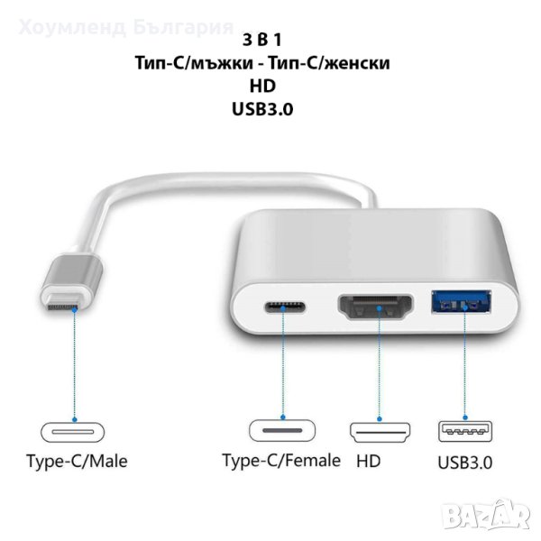 - Преходник тип хъб Type C към USB3.0, HDMI;