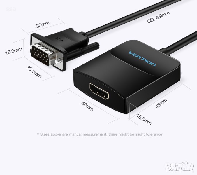Vention адаптер Adapter VGA to HDMI with sound - Active converter with AUX-in and Micro USB - ACNBB → Обява 41363551