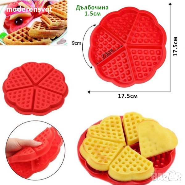 Силиконова форма за гофрети сърца в микровълнова печка или обикновена фурна. Формата има 5 гнезда – предназначена е за 5 грофрети с формата на сърца. Може да се използва както за печене, така и за замразяване. С формата може също да се приготвят домашни шоколадови блокчета.