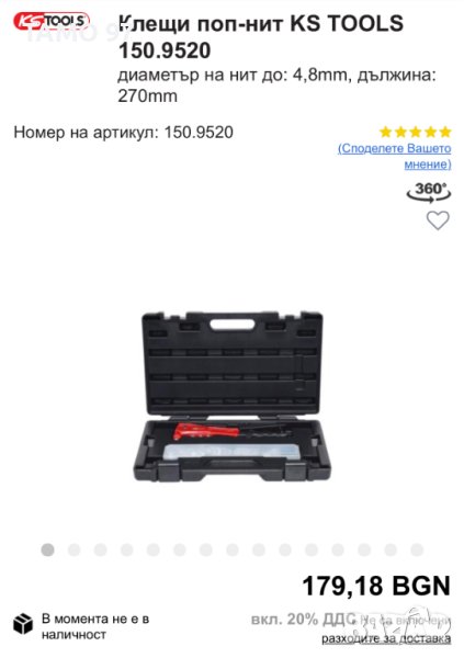 Продавам ръчна нитачка за поп-нитове до 4.8мм на марката KS TOOLS,