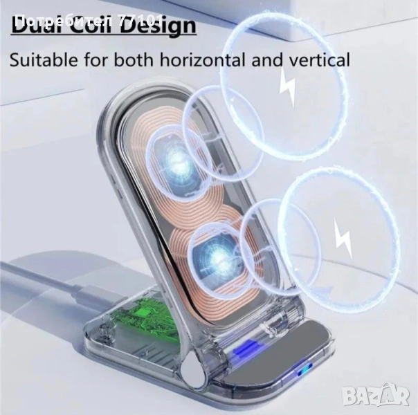 Сгъваемо безжично зарядно устройство за пътуване: Пренесете изживяването си с безжично зареждане на следващото ниво с нашата стойка за безжично зареждане Fast Charge! Стойката за безжично зареждане за всички телефони с безжично зареждане предлага бързо зареждане за вашия телефон у дома, в офиса и в движение благодарение на компактния си и сгъваем дизайн.