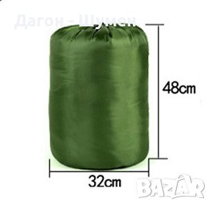 Двуслоен спален чувал тип "Мумия". Подходящ за спане на открито. Качулката е с допълнителен, изолационен слой и ластик за пристягане, което спомага за задържане топлината на тялото в чувала. Спалният чувал има възможност да се използва като одеало или постелка посредством ципа, който продължава и на късата страна на чувала. Предлага се в комплект с удобен калъф. Цвят: армейско зелено