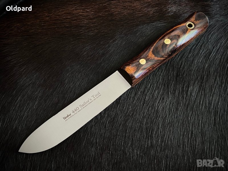 Linder Sailor’s Tool (Solingen) Прекрасен пример за немска практичност. Нож за всякакви поводи: туризъм в гората, лов, риболов, къмпинг. Ножът работи чудесно за месо и всякакви храни. Перфектно сплескано и заточено острие с дължина 13см (универсален размер). Удобна форма на острието drop poin. Класическа кожена ножница с пластмасова вложка (за безопасност). Ергономичната дръжка е изработена от дървр cocobolo с месингови щифтове. Това е чудесен помощник в мъжките пътувания.