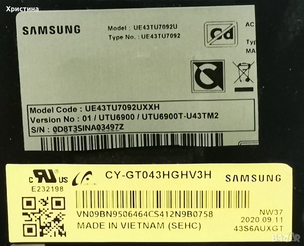 Samsung UE43AU7172U BN9653075F;UE43RU7092U BN41-02703;UE43TU7092U;QE43Q60RAT BN41-02695 → Обява 41370568