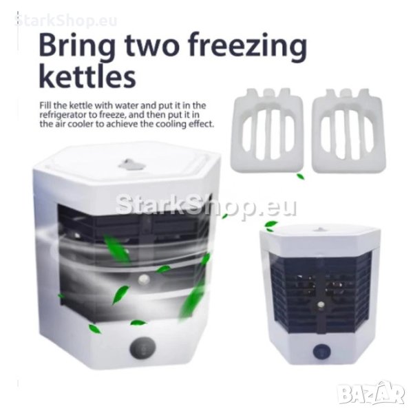 Най-нов модел 2023 година! Двойно по-ефективен преносим климатик Arctic Air ULTRA PRO е преносим охладител, който охлажда, овлажнява и пречиства. Този охладител за лично пространство разполага с три скорости на вентилатора и многопосочен въздушен отвор. Комплектът съдържа 2 броя пласмасови тубички за замеъзване. След, като ги напълните с вода и ги замразите във фризера, поставете една от тях в специалното отделение и се насладете на студения въздух.