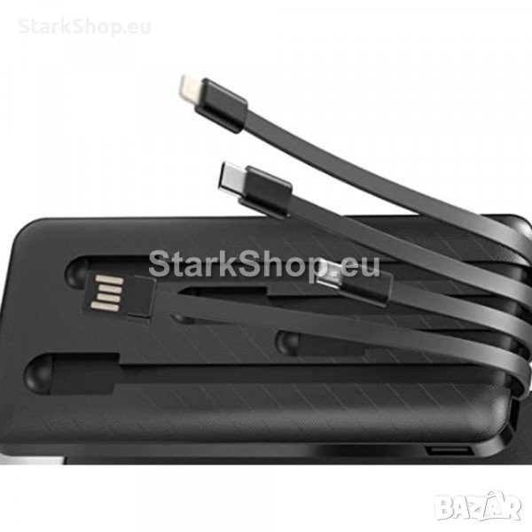 Соларна външна батерия 10000mah с три кабела и фенер за зареждане на таблети, смартфони, и други устройства с мощен LED фенер. Корпусът на пауърбанка е изработен от удароустойчива и приятна на допир мека пластмаса, като устройството разполага и с редица системи за защита, предотвратяващи късо съединение, презареждане, пълно и спонтанно разреждане и прегряване. В режим на резервна батерия можете да натрупате заряд от мрежата и след това да презаредите плейъра или мобилния телефон. Преносимото зарядно устройство има четири USB конектора за зареждане на устройства и miniUSB конектор за зареждане на самия Power Bank. Капацитетър от 60000 mAh ще ви помогне в критична ситуация и значително ще удължи живота на батерията на вашите любими устройства: смартфони, плейъри, таблети, камери и други устройства. Специални индикатори, поставени на предния панел, ще ви уведомят за оставащото ниво на заряд
